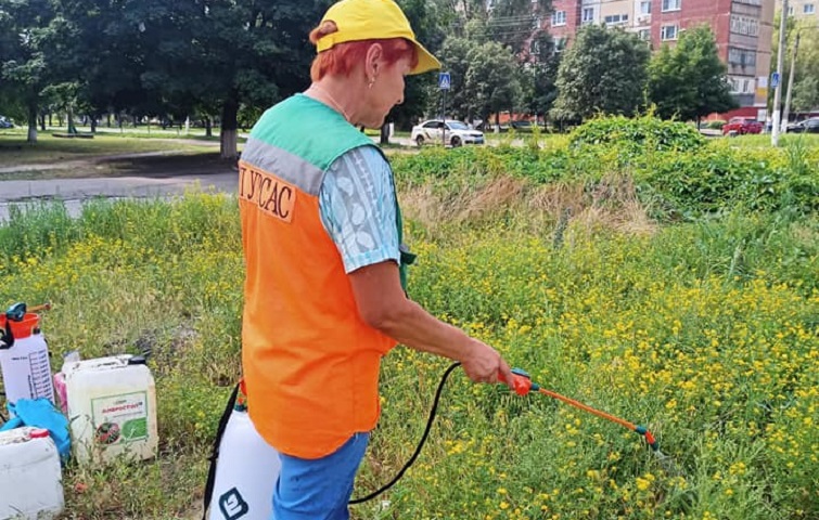 На пустыре на пересечении Парковой и бульвара Краматорского обработали амброзию препаратом "Амбростоп".