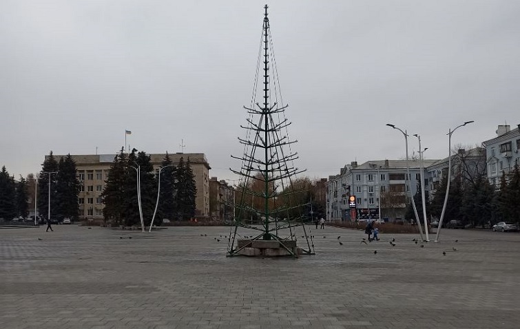 На центральной площади Краматорска начали монтаж новогодней елки и иллюминации