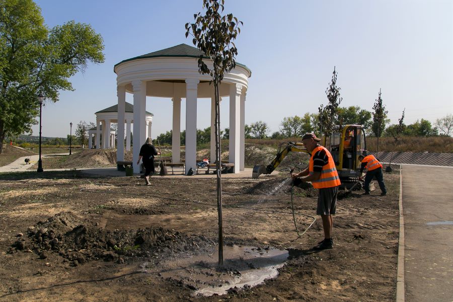 «Уже приехали саженцы платана, ликвидамбара, черемухи, сакуры, которая высаживается на аллее. Ожидаются сосны, которые по прибытию также начнут высаживать. Всего ожидают своей очереди на высадку135 деревьев, а в целом по парку планируется высадка 460 деревьев и порядка 3 тысяч кустарников. Их начнут высаживать со следующей недели», - рассказала «Восточному проекту» о процессе высадки саженцев специалист строительной компании ООО «СТЕК» Ирина Мыленко.