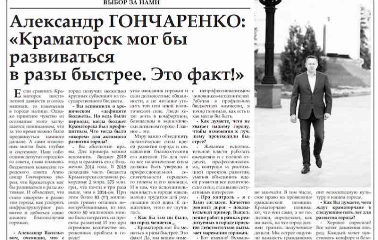 “Александр ГОНЧАРЕНКО: «Краматорск мог бы развиваться в разы быстрее. Это факт!»”