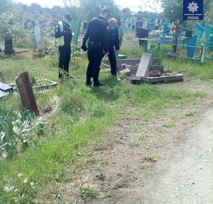 Неизвестный водитель устроил погром на кладбище Краматорска