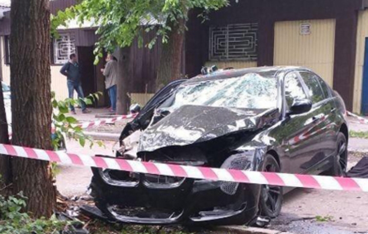 В начале второго часа ночи автомобиль "БМВ" двигался по улице Маяковского вниз и, на скорости проехав перекресток, врезался в дерево.