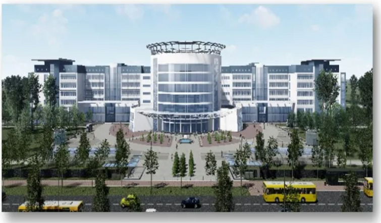 Вона матиме сім корпусів, перехід, пральню, патолого-анатомічне відділення, харчоблок, залу засідань, сховище, проїзди, доріжки, фонтан, амфітеатр, освітлення, мережу поливу, дитячі та спортивні майданчики, підземний паркінг, гараж, газову котельню, огорожу, ліфти, систему лікувального газопостачання, ескалатори, інженерні мережі, протипожежні системи, зв’язок, комп’ютерний клас, відеоспостереження, контроль доступу та інше.