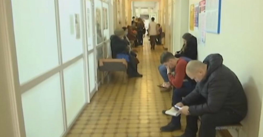 Краматорский центр первичной медико-санитарной помощи (ЦПМСП) принимает больных по одной очереди. Более того – кабинеты разделены на нескольких врачей. Такая толпа в больнице из-за ремонта, который начался в трети здания год назад.