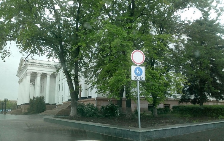 Патрульная полиция обращает внимание водителей на то, что территория возле центрального входа во Дворец культуры является пешеходной зоной, что обозначено соответствующими дорожными знаками.