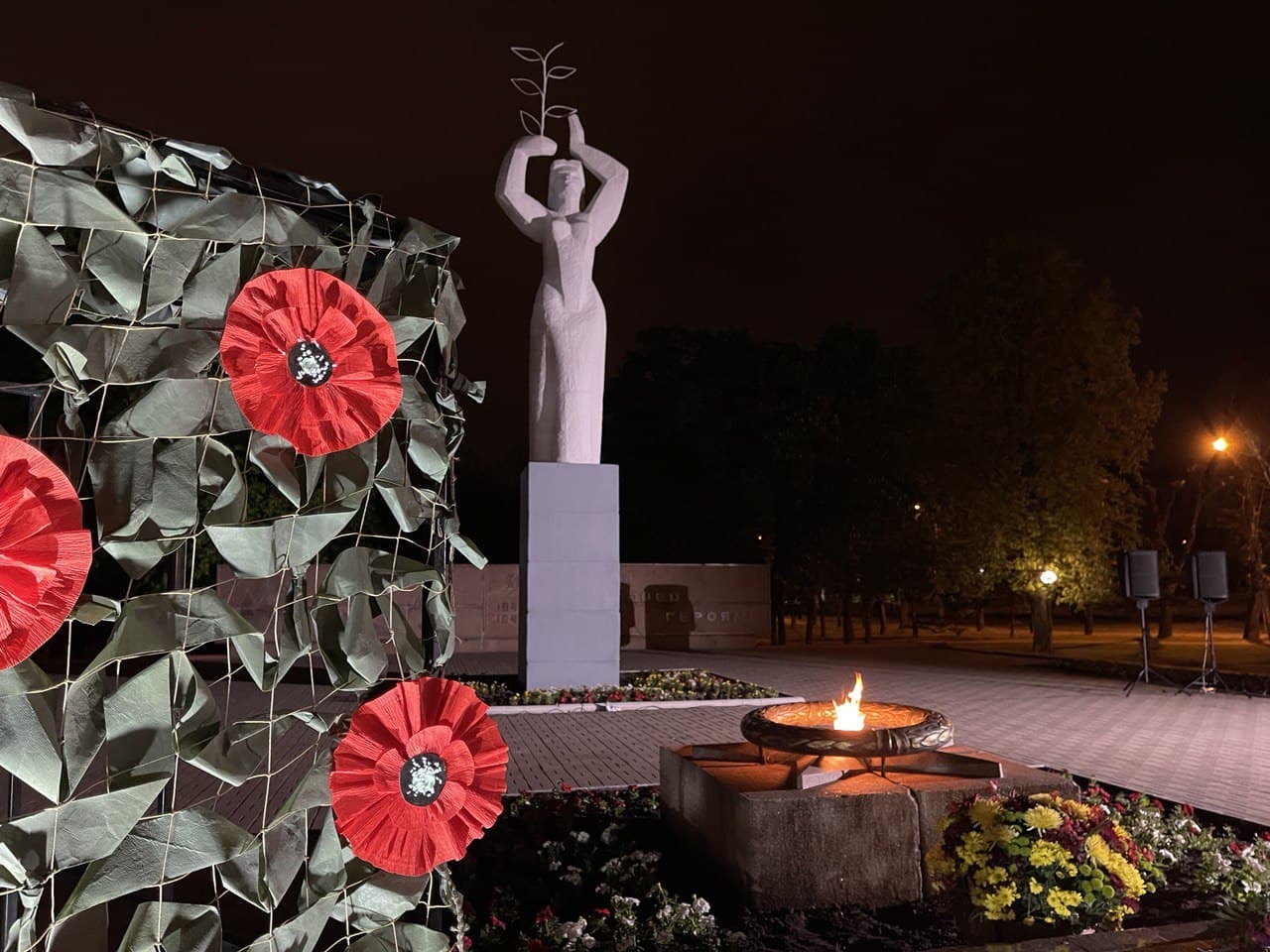Присутствующие возложили цветы к вечному огню и разместили на небольшой инсталляции маки – символ памяти о погибших во Второй мировой войне. Красный мак также символизирует кровавый след от выстрела.