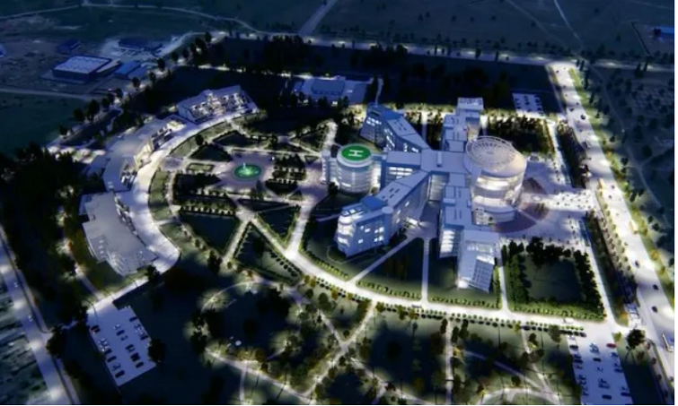 По словам Павла Кириленко, в больнице будет 600 койко-мест. Она будет состоять из 7 корпусов. Там разместятся стационарные отделения, паталогоанатомическое отделение, диагностический центр, детские и спортивные площадки, подземный паркинг, гостиница и общежитие для студентов медуниверститета.