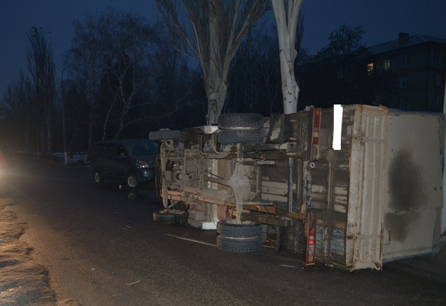 В центре Краматорска в результате столкновения перевернулся автомобиль.
