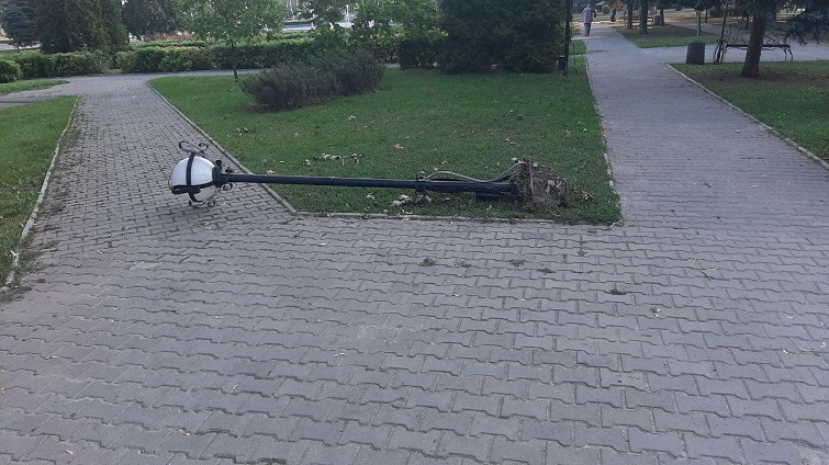 Ночные развлечения вандалов ночью в центре Краматорска закончились поваленным на землю фонарным столбом.