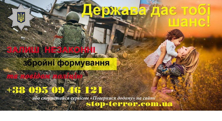 Полиция напоминает, согласно ч. 6 ст. 260 Уголовного кодекса Украины, освобождается от уголовной ответственности лицо, находившееся в составе вооруженных формирований, если оно добровольно вышла из такого формирования и сообщила о его существовании в органы государственной власти или органы местного самоуправления.