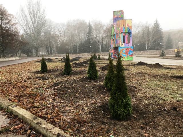 После вырубки аварийных деревьев идет процесс озеленения Краматорска. Так работы по высадке деревьев начаты возле входа в парк Юбилейный, а также возле магазина "АТБ" в Старом Городе.