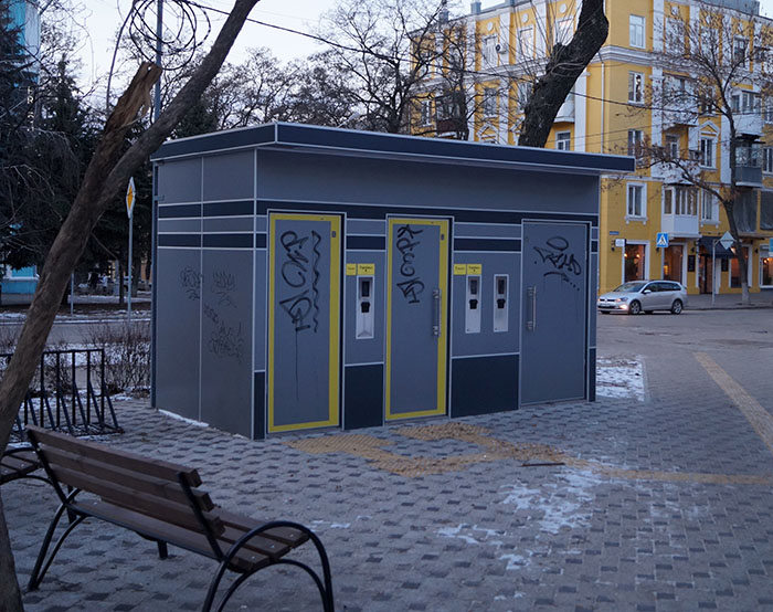 -- в старой части города туалет пока что не будет запущен, так как «во время настройки кабинки возникли неполадки с оборудованием. Сбои произошли с электроникой»;