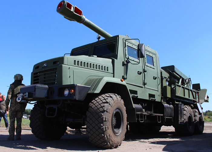 САУ Богдана – совместная разработка Краматорского завода тяжелого станкостроения и компании Украинская бронетехника. Впервые ее показали в августе 2018 года на параде в День Независимости в Киеве. Богдана – колесная артустановка, базируется на шасси КрАЗ-63221. Экипаж пять человек. Машина укомплектована баллистическим вычислителем, автоматической системой наведения пушки, встроенной навигационной системой и дисплеем командира.