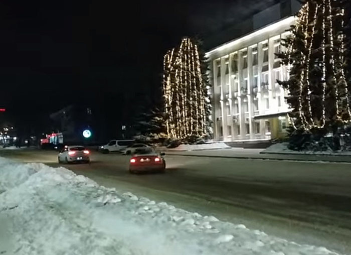 Вечером 21 января, за окном моего офиса в самом центре города, в гостинице "Краматорск", стали раздаваться мощные моторные рыки и визг тормозов. Вид за окном не только не радовал, но и призвал тут же включить видеорежим на фотоаппарате: по блестящей поверхности дороги, на перекрестке центральных улиц Стуса и Мира, носило юзом автомобили.