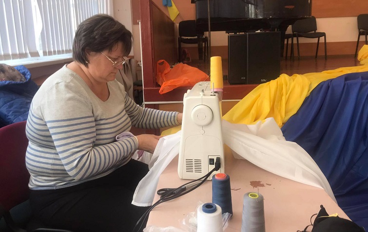 Сегодня в Краматорске волонтеры сшивают крымскотатарский и украинский флаги, на которых будет портрет Наримана Джеляла.