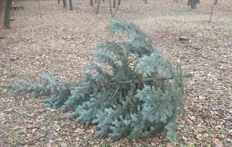 Сезон «охоты» на елки открыт? В нескольких парках Краматорска срезали сосны и ели