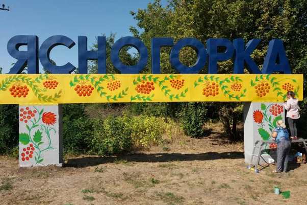 Школьники разускрасили стеллу на въезде в поселок Ясногорка