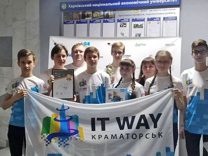 Команда «ITway» из ОШ №16 Краматорска (на фото) завоевала награду «Чемпион FLL» на региональном турнире в Харькове.