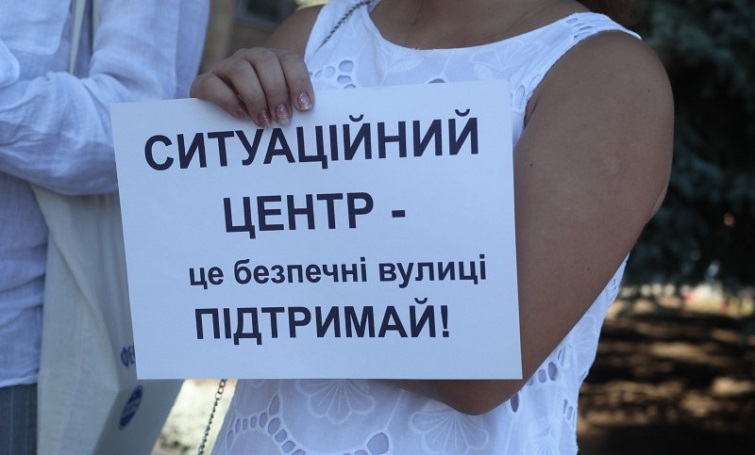 Утром 9 сентября перед зданием исполкома прошел пикет в поддержку создания ситуационного центра. Четверо активистов общественной организации “Сильні громади” держали плакаты с надписью: “Ситуаційний центр на безпечній вулиці підтримай”. Это было обращение к депутатам горсовета, которые в это время собирались на очередную сессию.