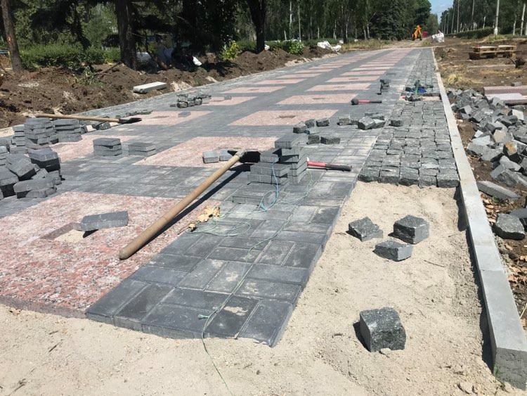 Как рассказал начальник участка Леонид Прибытко, было принято решение не демонтировать старые тротуарные плиты. Это позволило сократить время на выравнивание основы под новую плитку и средства, которые было бы необходимо потратить на демонтаж (примерно 1,5 млн. гривен).