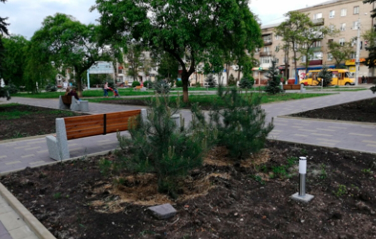 Совместными усилиями созидателей и разрушителей сквер в центре Краматорска рискует прийти в негодность еще до сдачи в эксплуатацию