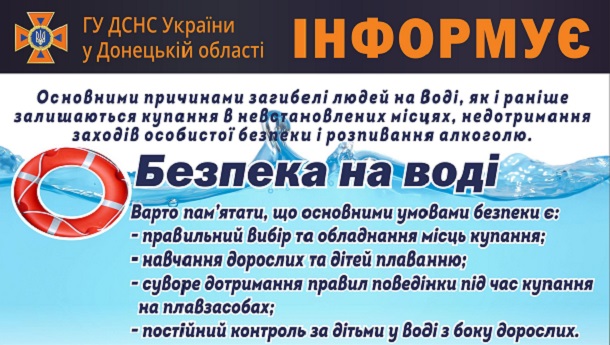 К сожалению, при этом не все соблюдают правила безопасности. Как результат, на водных объектах гибнут люди. Только с начала купального сезона, то есть с 01 июня, на водоемах области погибли 7 человек. Трагические случаи произошли в г. Славянске, Краматорске, Покровском, Лиманском и Бахмутском районах.