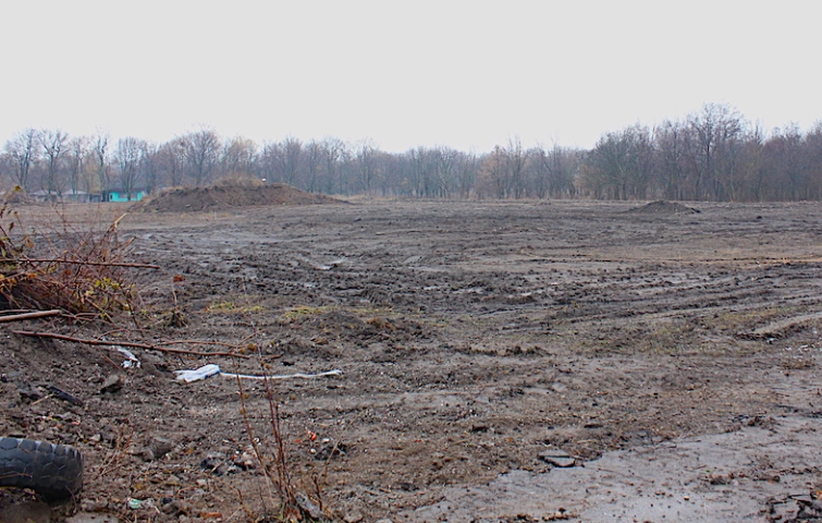 С тех пор бывшее футбольное поле, на месте которого должен появиться новый стадион, стоит перекопанное до сегодняшнего дня.