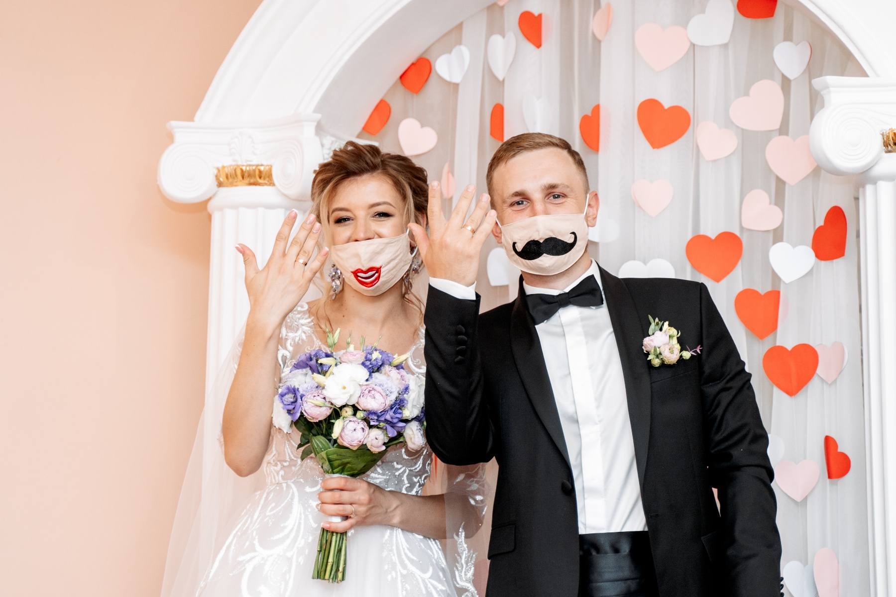 Кстати, Кристина Гудкова добавила, что все молодожены и их гости противоэпидемические правила соблюдают. А с продолжительностью карантина многие стали придумывать креативные маски – с узорами, вышивкой, цветами.