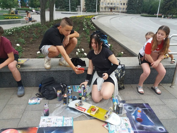 Мы познакомились: 19-летняя Ольга Михайличенко создает картины на глянцевом картоне в стиле сюрреализма и портреты с помощью баллончиков с краской, но может разукрасить и скейт по вашему желанию.