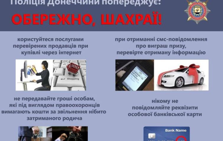 І остання з найпоширеніших шахрайських схем - це дзвінок нібито від працівника поліції з повідомленням, що Ваш родич скоїв злочин. Як правило такі «поліцейські» пропонують одразу «закрити справу» шляхом переказу необхідної суми грошей на вказаний рахунок.