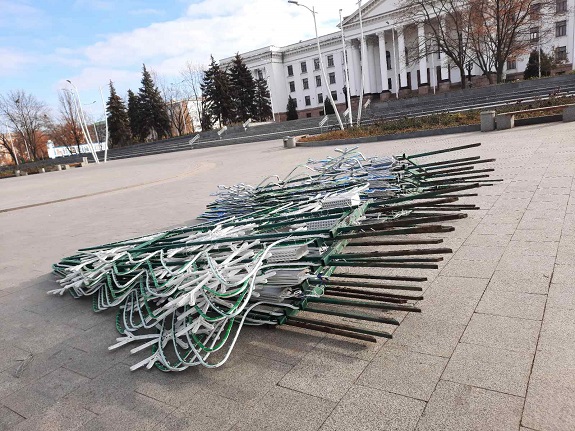 Центральную площадь Краматорска начали украшать к Новому году (фотофакт)