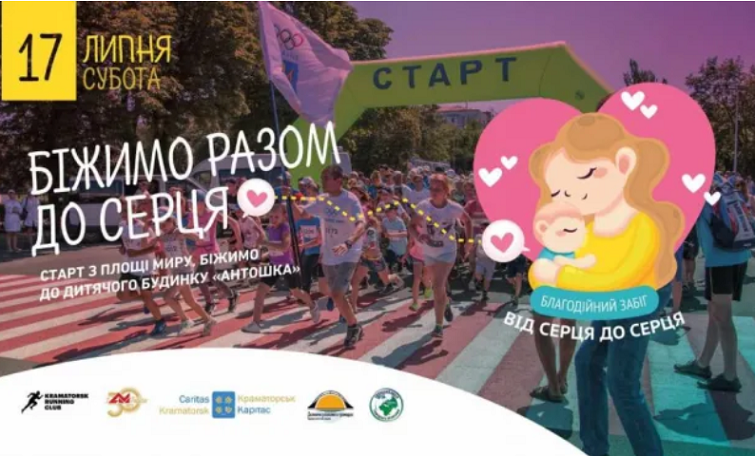 17 липня у Краматорську громадські організації "Здоровий вибір", "Біговий Краматорськ" та БО "Caritas Краматорськ" проведуть благодійний забіг "Від серця до серця". Партнер заходу - Асоціація молоді НКМЗ.
