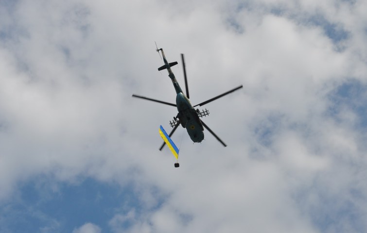 Несподіванкою стало для учасників те, що над містом пролетів гелікоптер з Прапором України.