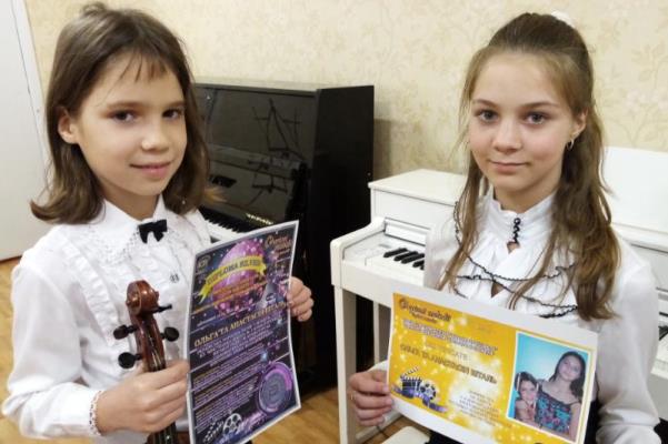 "В нашей школе учатся две талантливые сестрички Шталь - скрипачка Ольга (преподаватель - Алла Викторовна Соломатина) и пианистка Анастасия (преподаватель - Ирина Владимировна Шигонова).