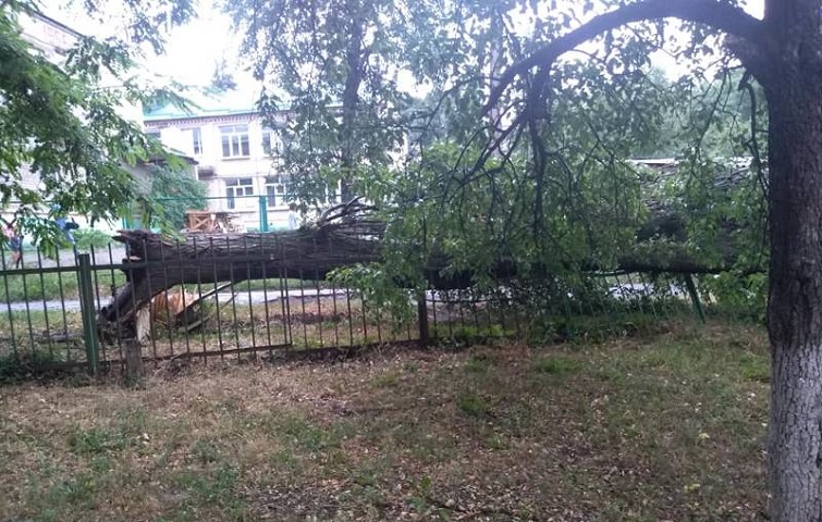 В результате непогоды в некоторых местах Краматорска упали деревья и ветки. Так, большое дерево упало на забор 25-й школы в центре города.