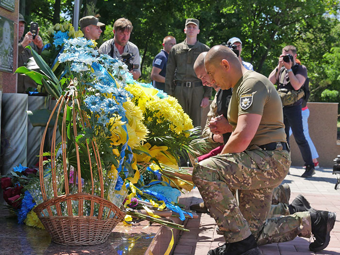 Присутствующие почтили память погибших минутой молчания и возложили цветы к памятному монументу, а военный капеллан 15 полка Национальной гвардии Украины отец Дионисий провел молебен за каждого, кто погиб за независимость и территориальную целостность Украины.