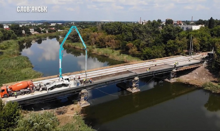 Работы по ремонту моста через Казенный Торец в Славянске выполнены на 85%.
