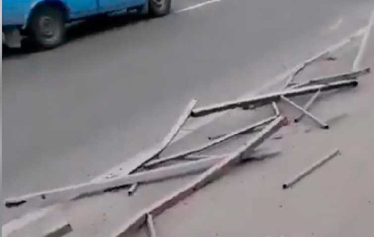 В Краматорске грузовик снес несколько метров ограждения