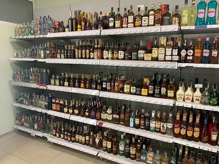 В магазине обнаружили более полутысячи литров ликероводочных изделий известных брендов.