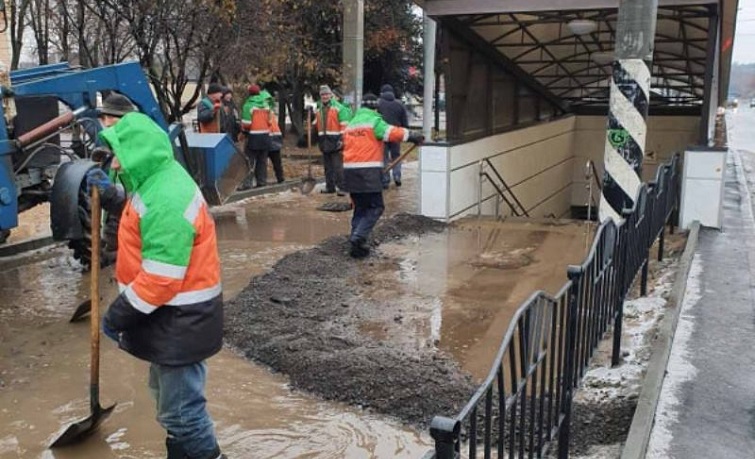 Ответственные службы Краматорска ликвидируют последствия затопления подземного перехода.