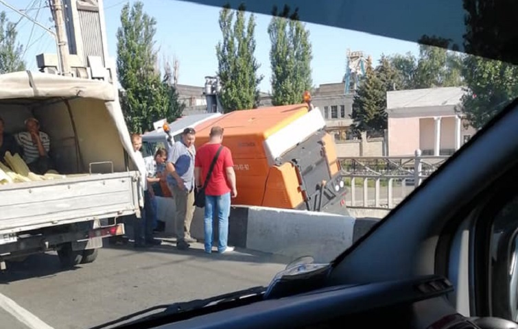 В Краматорске коммунальный автомобиль по уборке улиц чуть не провалился в реку