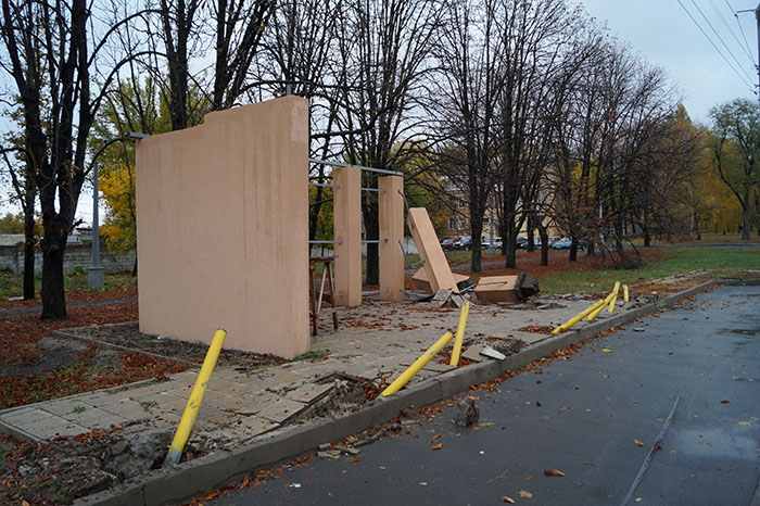 В Краматорске кто-то разрушил строящуюся остановку общественного транспорта