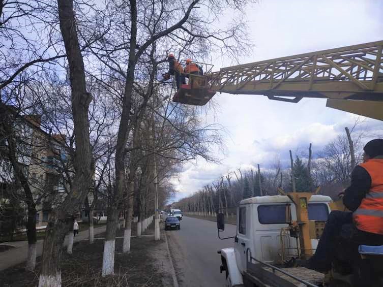 Фото: обрезание деревьев весной 2019 года по ул. Академической