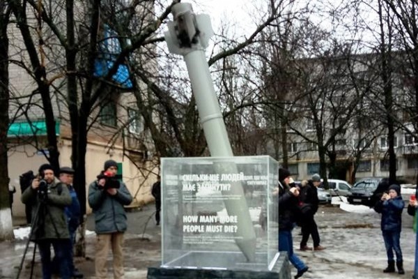 Позже памятник жертвам обстрела Краматорска 10 февраля 2015 года перенесли из центра города на территорию воинской части. Мемориал перенесли по инициативе собственников для того, чтобы уберечь от вандалов.