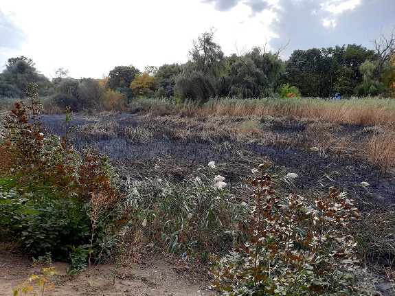 30 сентября поздно вечером загорелся камыш возле озера в парке Юбилейном.