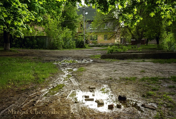 «На ул. М. Примаченко, в районе Крытого рынка, известная стройка, хозяин которой обещал обустроить фонтан, офисный центр и не трогать растущие деревья, а по факту мы видим только бетонные плиты».