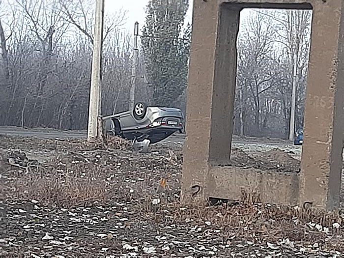 Утром 14 ноября на улице Магистральной в Краматорске произошло дорожно-транспортное происшествие, в результате которого перевернулся автомобиль "Hyundai Elantra".