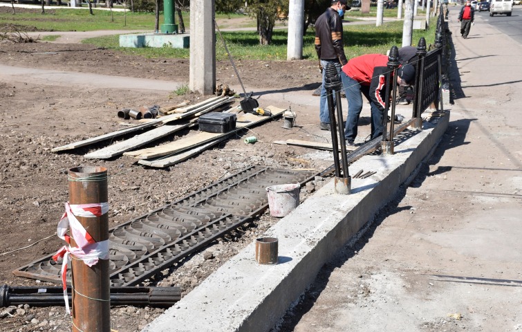 В старой части города, в районе бывшего трамвайного круга продолжается обустройство сквера. Высажены молодые деревца и елки. Сегодня рабочие завершают восстановление металлического ограждения, а в планах на ближайшие месяцы обустройства новых тротуаров.