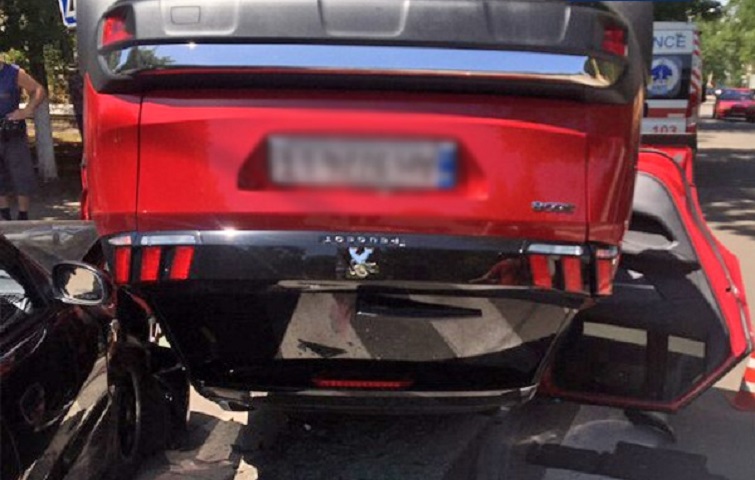 Удар был такой силы, что автомобиль Peugeot перевернулся.