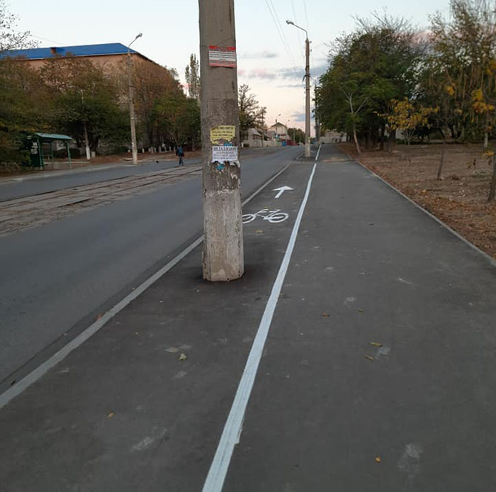 Итак: следуя моде, уступая многочисленным требованиям велосипедистов и выполняя курс на повышение безопасности дорожного движения, в Краматорске, действительно, начали наносить разметку под велодорожки. Согласно информации системы "Prozorro", тендер на ремонт тротуара по улице Днепровской выиграло предприятие ООО «Облдорремстрой», за что заказчик - Отдел коммунального хозяйства - заплатил ему 2,7 млн гривень. Как сообщает издание "Восточный проект" со ссылкой на заведующего сектором ремонта объектов благоустройства и охраны окружающей среды отдела коммунального хозяйства Краматорска Станислава Данилюка, нанесение велосипедной разметки также выполнялось подрядчиком. Который, судя по конечному результату, решил, что велосипедисты - не трамваи, и столбы объедут. Результат вызвал шквал гомерического хохота и издевательских комментариях в местных соцсетях.